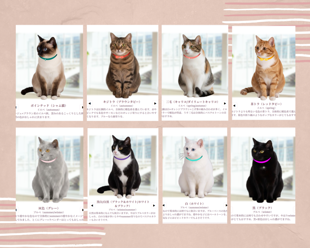猫の毛色もパーソナルカラーで分けられます。