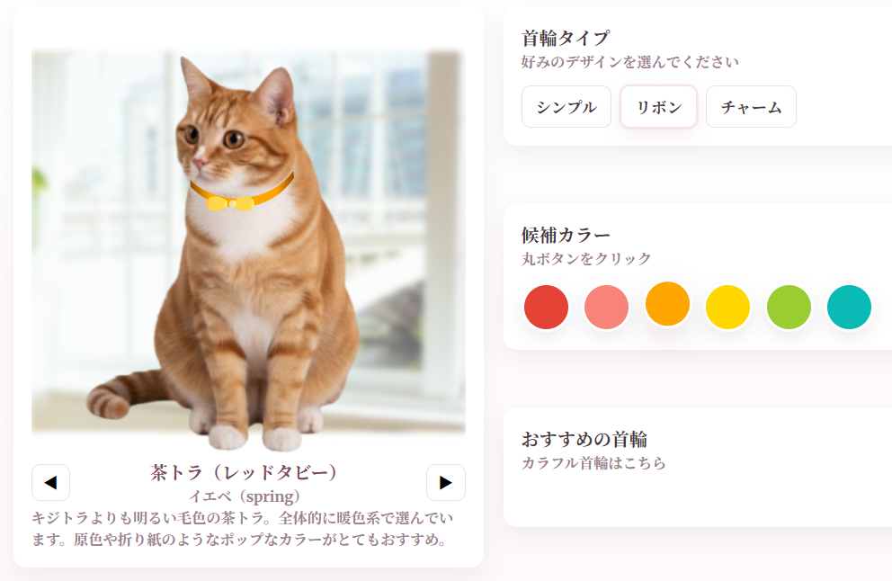 より猫ちゃんに似合いおしゃれに見える首輪をパーソナルカラーの観点からつくってみました。